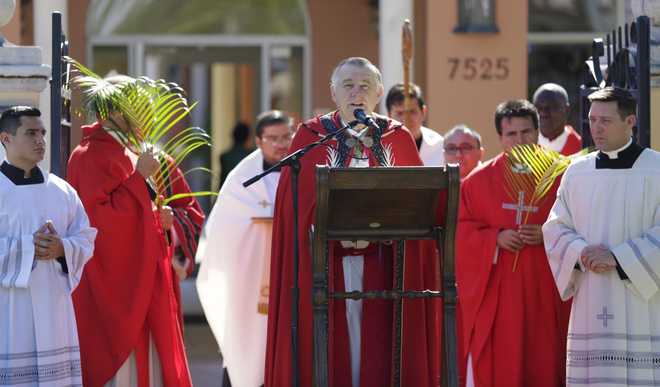 ASSISTANT PARISH PRIEST OF SACRED HEART CATHOLIC CHURCH GWAGALADA, ABUJA, REV. FR. SAM OKORIE, BLESSING PALMS AND PARISHIONERS TO MARK PALM SUNDAY ON SUNDAYArchbishop Thomas Wenski addresses the crowd before blessing the palms outside St. Mary Cathedral in MiamiArchbishop Thomas Wenski blesses the palms outside St. Mary Cathedral in Miami on Palm Sunday, April 13, 2014.Pope Francis drinks from a mate gourd, a traditional South American cup, that was offered by faithful as the pontiff is driven through the crowd at the end of a Palm Sunday mass in St. Peter’s Square, at the Vatican, Sunday, April 13, 2014. Pope Francis, marking Palm Sunday in a packed St. Peter’s Square, ignored his prepared homily and spoke entirely off-the-cuff in a remarkable departure from practice. Later, he hopped off his popemobile to pose for “selfies” with young people in the crowd. In his homily, Francis called on people, himself included, to look into their own hearts to see how they are living their lives.