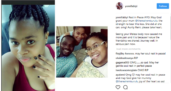 ”Rest in Peace AYO. May God grant your mum @therealremisurutu the strength to bear this loss. She did all she can, omg! Aunty Remi, please take heart.