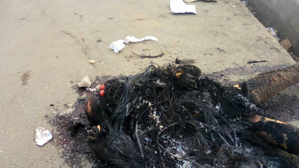 According to the report, a suspected car battery thief was caught and burnt this morning at Yellow Duke, Cross Rivers State.