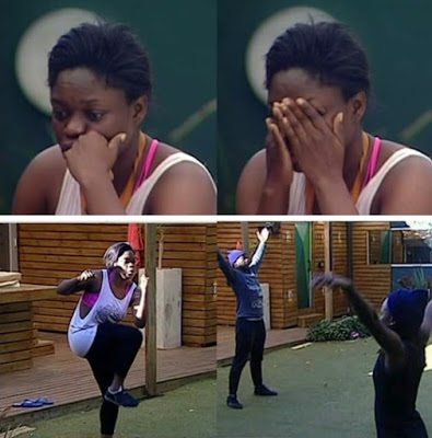 Bisola sat outside after the morning workout session today and wiped tears from her eyes.