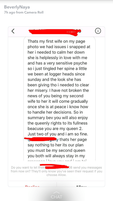 Tinsel Star actress Beverly Naya, has shared screenshot of a DM she got from a ‘married’ man, who asked her to come be his second wife and also ‘Queen 2’.