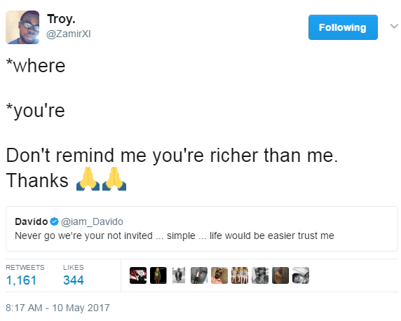 So, Davido gave an advise to his fans on Twitter and the tweet came with some errors.