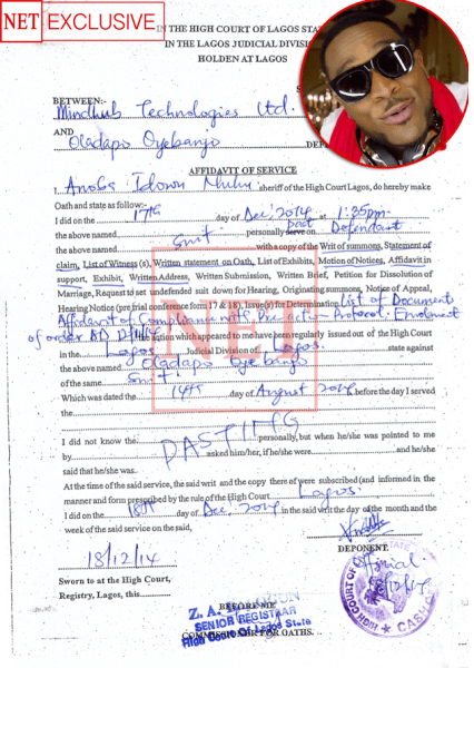 According to MindHub, D’Banj, through his company, DKM Media Limited, obtained a loan of over N60 million from them in January 2013, and has not paid back the said sum despite signing an undertaking to do so. In addition, the technology company claimed that the entertainer has issued two cheques already, one on December 20, 2013 and another on January 20, 2014, both of which had to be returned unpaid after presentation because the pop star’s account was not liquid enough to offset the debt.