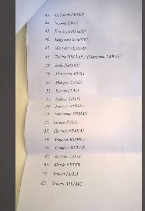 The list was released on Sunday evening after the girls met with President Muhammadu Buhari. See the full list below: