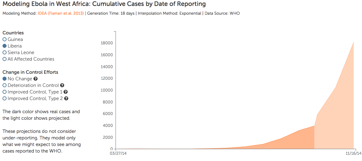 During the Ebola crisis, HealthMap has been using data from the World Health Organization to show when and where people died from the virus. It has also modeled the spread of the outbreak in Guinea, Liberia and Sierra Leone, which have been hardest hit by the epidemic, and estimated the number of future cases.