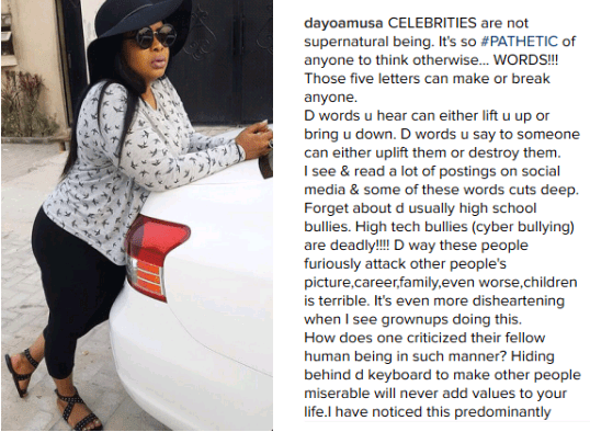 Nollywood actress Dayo Amusa has come for cyber bullies who troll celebrities.