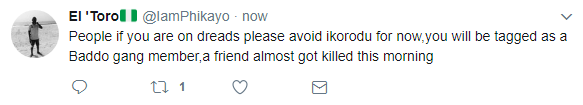A twitter user, Phikayo has revealed how his friend was almost lynched this Morning in Ikorodu by angry villagers, because he was on dreads.