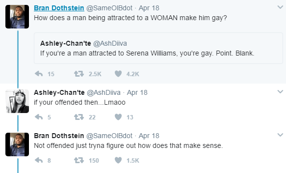 ‘If you’re a man attracted to Serena Williams, you’re gay. Point. Blank.’