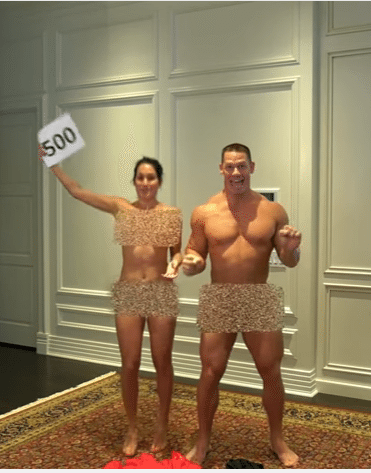 WWE wrestler, John Cena stripped completely naked to celebrate his new fiancée Nikki Bella’s 500,000th subscriber to her YouTube channel.