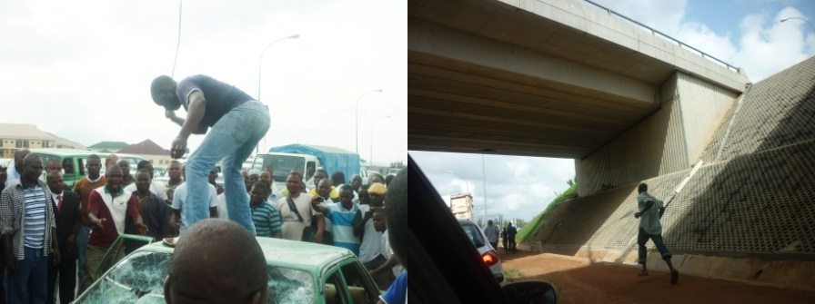 Passers-by noticed and gave the taxi a hot chase till it stopped. The victim explained his ordeal and the lynching and subsequent act of throwing the culprtits over the bridge occured.