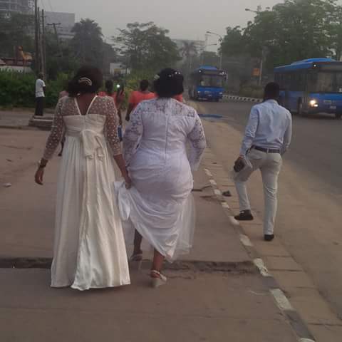 She was spotted walking to her wedding as major roads were closed due to the Lagos marathon.