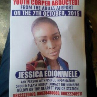 The above lady is a readers niece. Her Name is Jessica Edionwele, she is only 24 years and a youth corper. She was abducted on the 7th of October 2015 in Abuja while going to visit her dad.