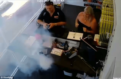 CCTV footage captured in Queensland, Australia shows the moment a man’s iPhone exploded in his hands as he tried to fix it at a repair store.