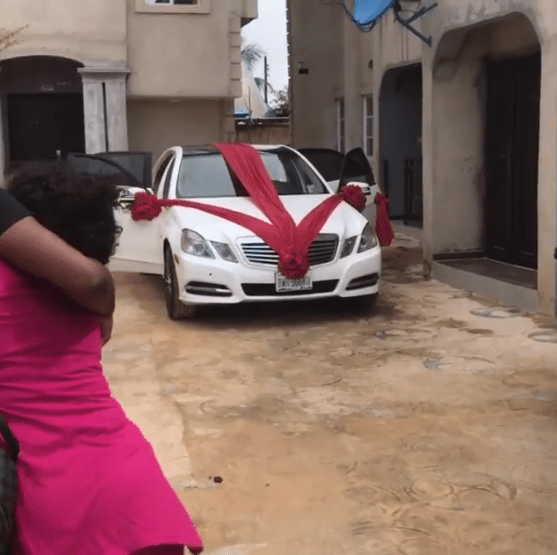 A Nigerian man, Eshegbe Solomon has gifted his girlfriend of 4 years, Kelechi Christabel a N15m benz E350 just to appreciate her for being with him even when he had nothing and was discouraged by her friends to leave him.