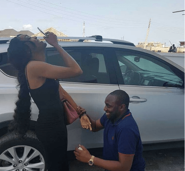 Nigerian man proposes to girlfriend with a Toyota Rav 4 Jeep (Photos)