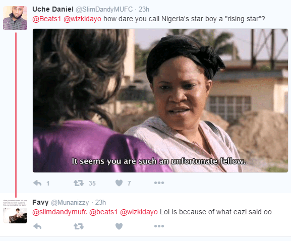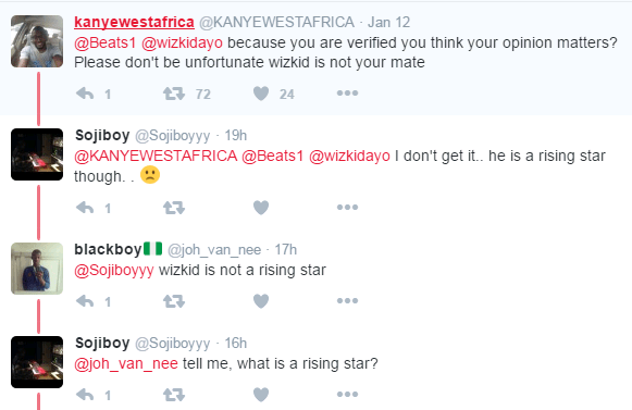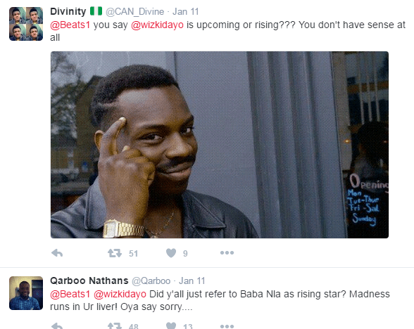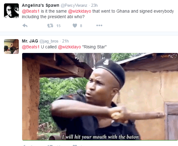 Beats made the above post referring to Wizkid as “Rising Nigerian Star”. Trust Twitter Naija not to take it lightly. See some hilarious responses below….