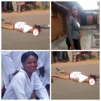 According to Facebook user, Ibe Caleb, the young lady pictured below was crushed to death by a truck carrying drinks on her way from the bank.