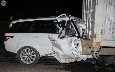 The Range Rover SUV rammed into the parked trailer at 1am along Lagos/Ibadan express way. The driver who was the only one in the car died instantly.