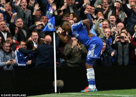After racing onto a Jan Vertonghen back pass, Eto’o lashed the ball home to give Chelsea the lead against Tottenham – before pulling off an old man celebration.