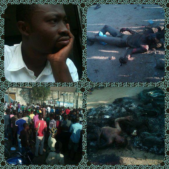 Do we ever listen? Below are pictures of the remains of four men who allegedly went to rob last night but were caught. They were burnt alive in Vono Street, Mushin this morning. The BC has been going on since morning, but we couldn’t get better pictures than this. Thanks to www.elombah.com.