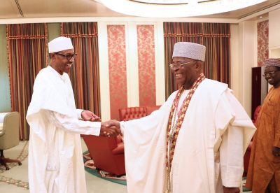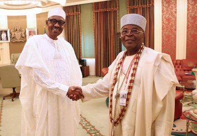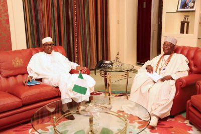 President Muhammadu Buhari on Thursday received the Alake of Egbaland, Oba Michael Aremu Adedotun Gbadebo 111 at the State House, Abuja.
