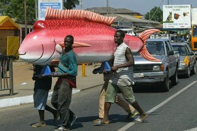 This is what a nurse was buried in recently in Ghana. A “specially” made customized coffin in the form of a syringe… There are some specialized custom made coffins made in Ghana, which allow the deceased to be buried in everything “they would dream of” -ranging from a massive hen to a bottle of coke. The ‘fantasy’ coffins have become internationally famous for their unusual designs. See some below..