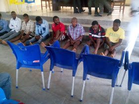 Emmanuel Akamaba aged 38 and Ezekiel Adie aged 35, were among the nine suspects paraded at the police headquarters for their involvement in gun running.