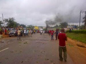 Some students of Ondo State owned Rufus Giwa Polytechnic in Owo, Ondo state yesterday morning July 7th took over the Owo/Abuja expressway to protest the recent hike in their school fees.