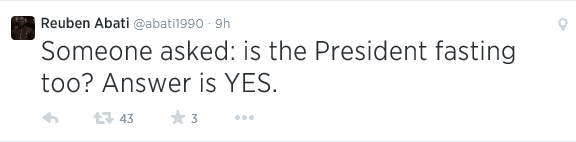 Presidential Spokesperson, Reuben Abati revealed this two nights ago by sharing photos of the President dinning with Vice President, Namadi Sambo as well as the Peoples’ Democratic Party Chairman, Adamu Mu’azu, Inspector General of Police (IGP), Mohammed Abubakar and other top government functionaries.