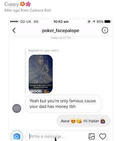 Beautiful daughter of Billionaire businessman, Femi Otedola, DJ Cuppy revealed hateful messages a non-fan sent to her on Snapchat.