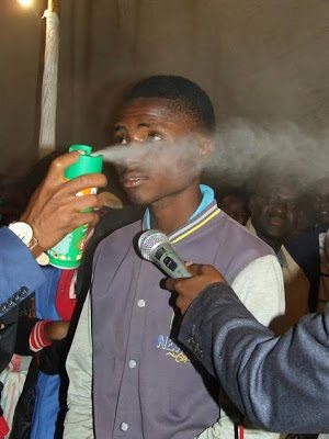 A “Prophet” Lethebo Rabalago from the Mountzion General Assembly in Limpopo, South Africa, has been pictured using Doom (an insect killer) to heal his followers during a service and prayer meeting over the weekend. Shared via the church and his alleged personal Facebook page, the prophet is seen spraying the chemical directly on their faces and body parts, in order to heal them