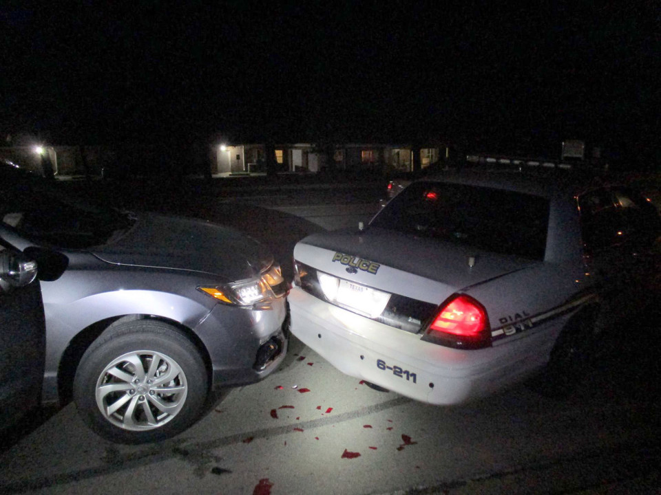 The cop at the scene told how he had parked his patrol vehicle in the southbound lane of East Villa Maria Road in Texas with the red emergency lights on while he investigated a disturbance call.