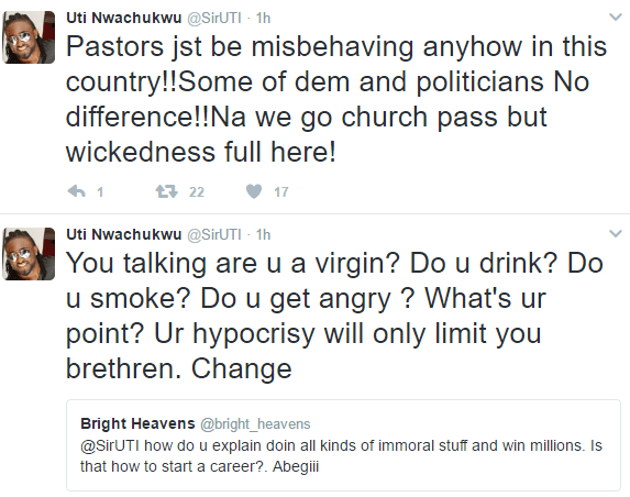 Uti Nwachukwu who won Big Brother Africa Season 5, has called out the Port Harcourt-based pastor who cursed the organizers of Big Brother Naija. Read the rest of his tweets below.