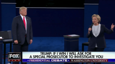 Billionaire businessman, Republican presidential candidate Donald Trump on Sunday night’s US presidential debate threatened to prosecute and send his presidential rival Democratic US presidential candidate Hilary Clinton to jail if he’s elected president for ‘her lies’ and 33,000 deleted emails from her private server, a national security crime which Trump believes would have sent any other person to jail. Trump said he’ll appoint a special prosecutor to look into her case and prosecute her.