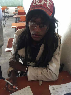 For his mission, he disguised as a woman, fully kitted in a wig, makeup, and a handbag but he was eventually caught by the eagle-eyed invigilating officer.